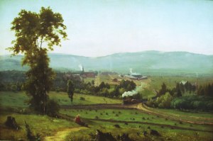 Before going to the museum today, I had spent a little time in a class at Middlebury talking about the question of how the Hudson River Valley School painters addressed industrialization. I came out of the class a little confused, but generally thinking that Thomas Cole and others were skeptical of “progress.”